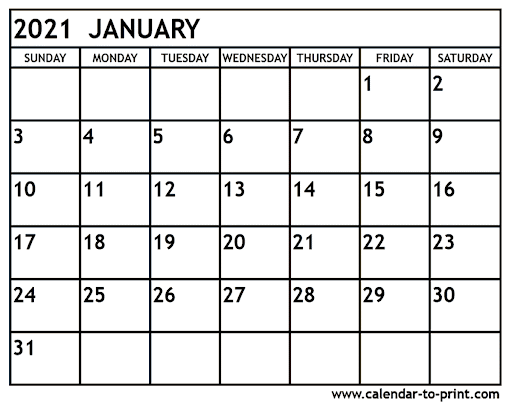 January 2021 Calendar Printable